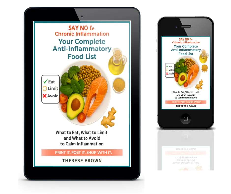 "Your Complete Anti-Inflammatory Food List", a quick-reference, research-backed shopping guide you can use at home or on the go.